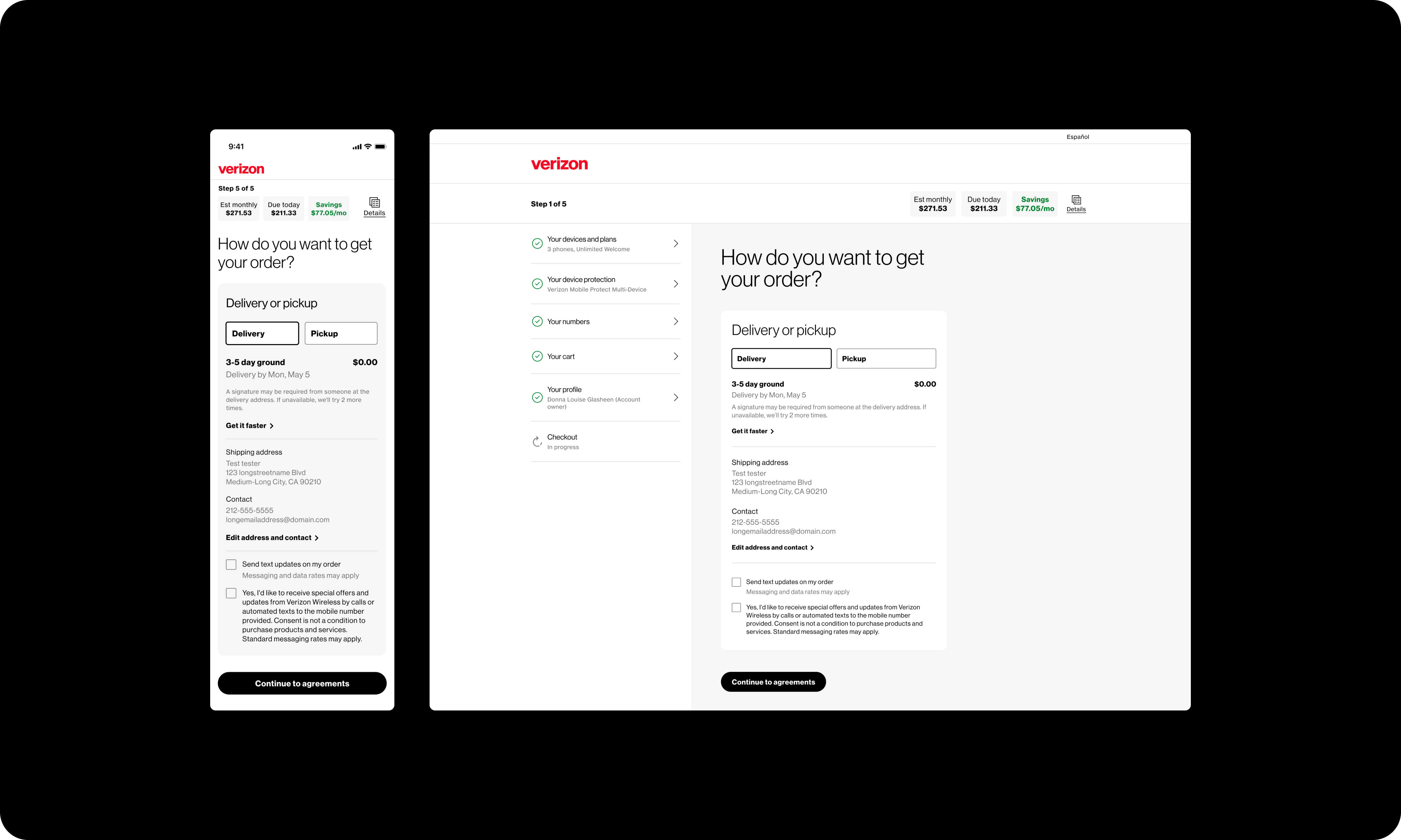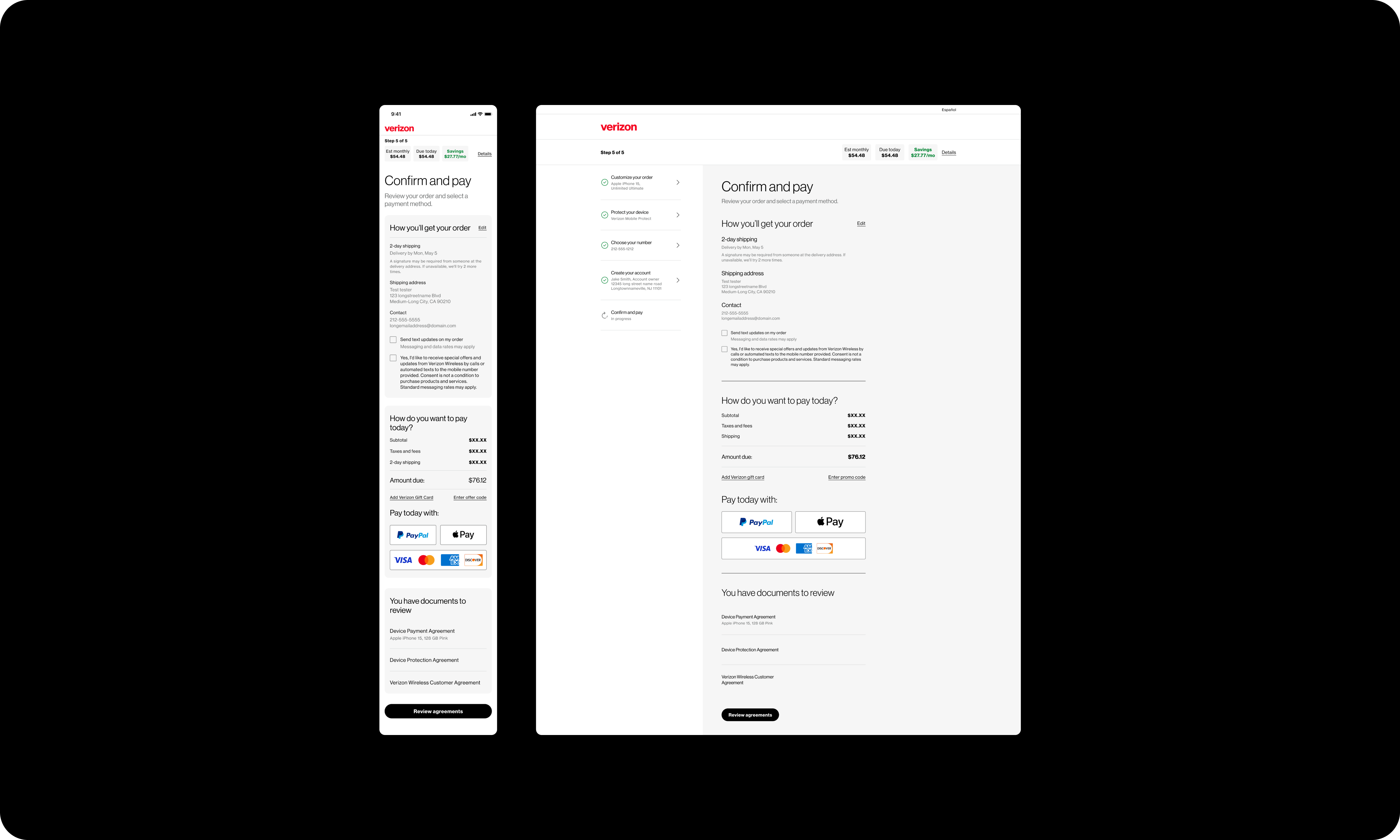 Redesign the Verizon online fulfillment experience to care for complex split fulfillment scenarios and drastically increase how many order types can be placed. The goal was to modernize the experience while maintaining simplicity for the customer, despite the increased complexity to develop.
